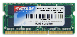PATRIOT OPERAČNÍ PAMĚŤ 2GB SO - DIMM DDR3 1333MHZ CL9 PATRIOT SIG ...