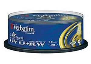 DVD+RW MÉDIUM VERBATIM 4, 7GB 4X SPEED, BALENÍ 25KS CAKEBOX
